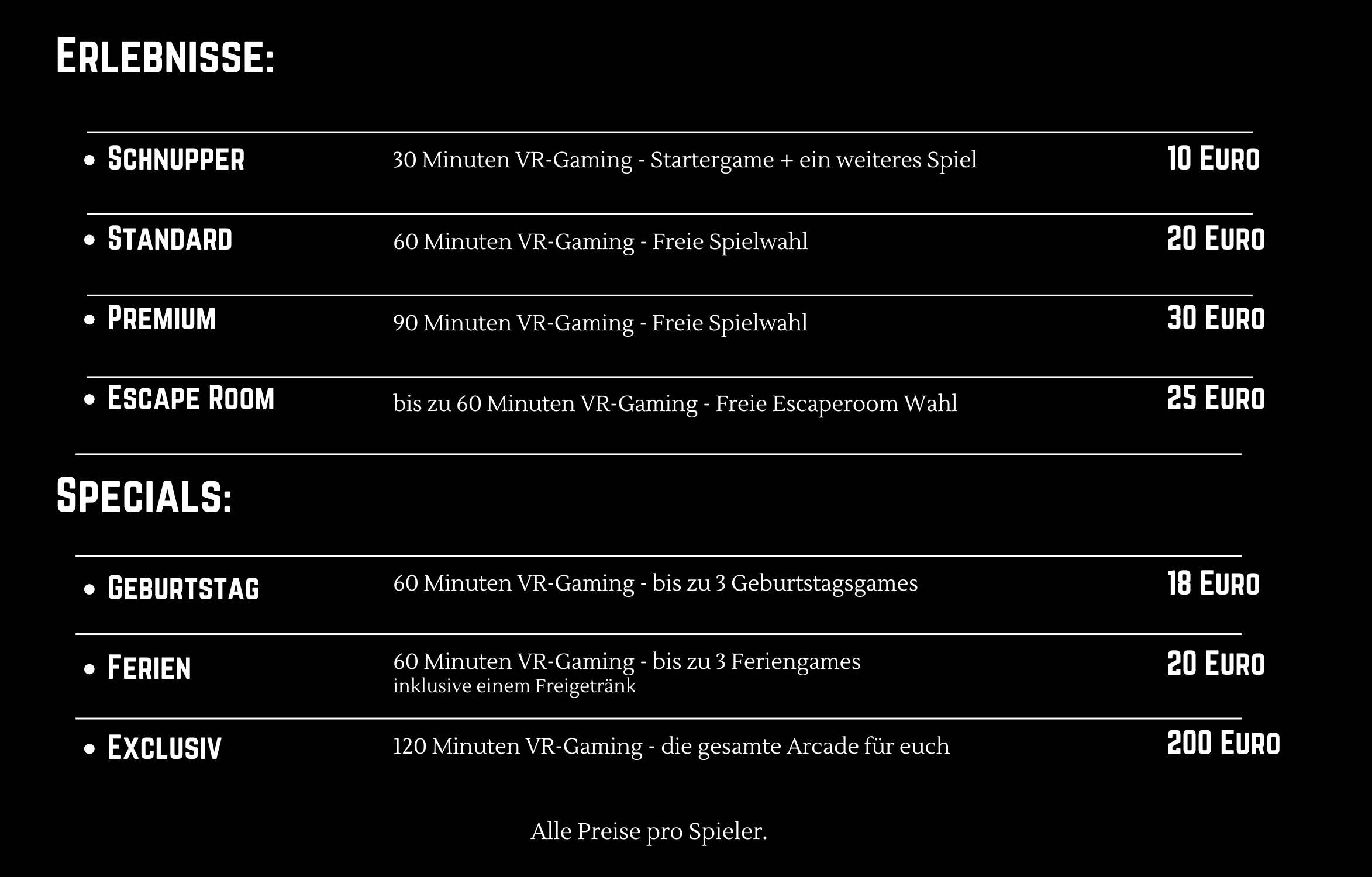 Die Spieler nutzen die VR-Brillen auf eigene Gefahr. Die VR-Brillen dürfen nur auf Anweisung des Personals der Nautic VR GbR genutzt werden.